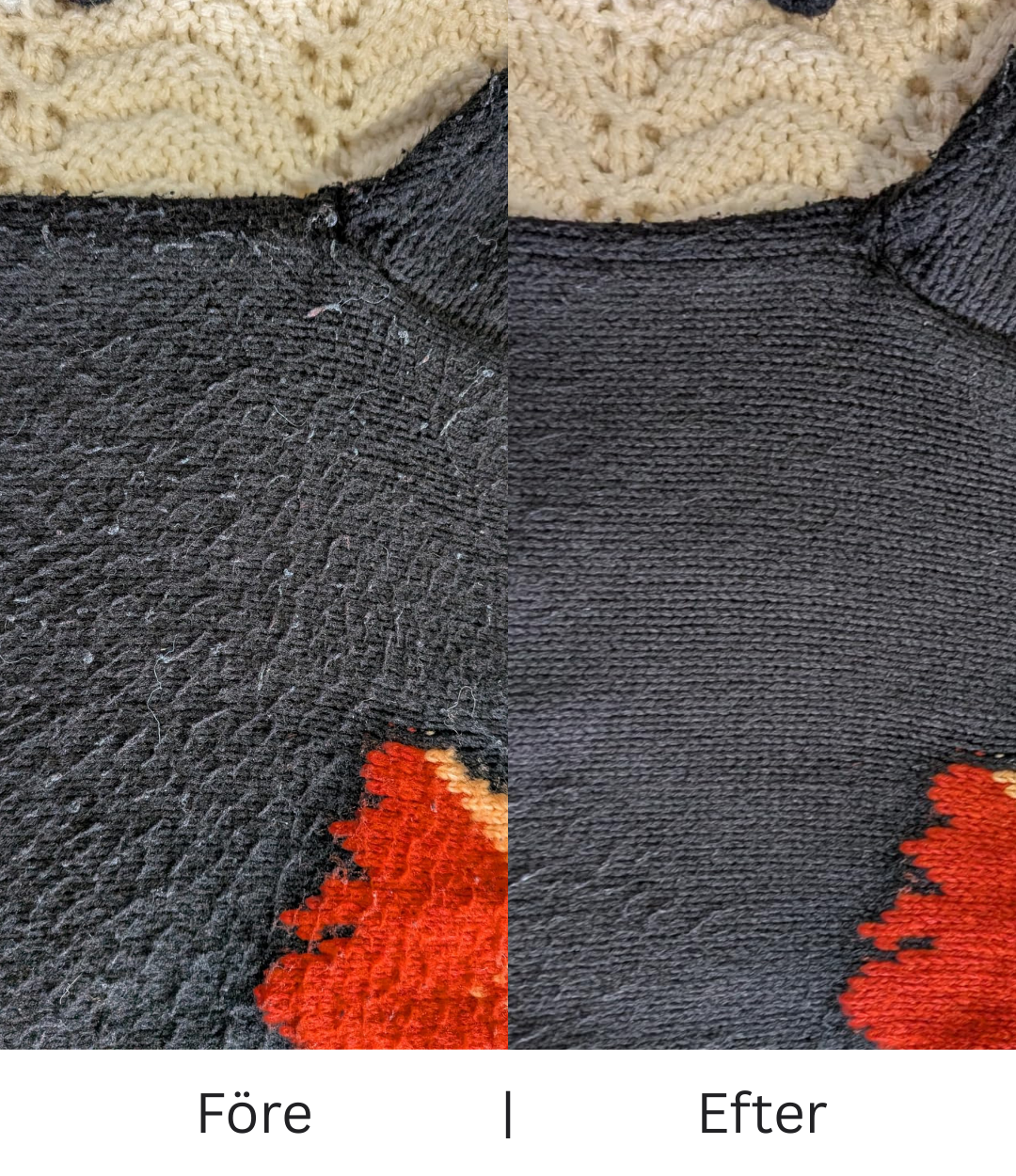 Tar bort 100% ludd, noppor & tygfuzz där andra metoder misslyckas